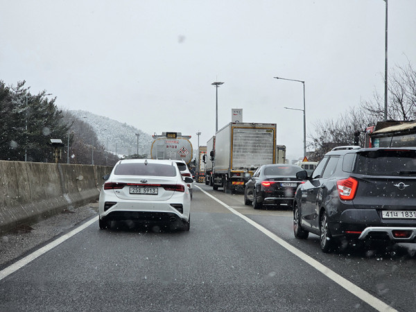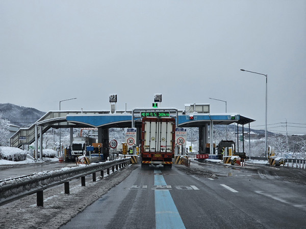도로가 미끄러울 수 있으니 감송운전하면서 톨 지나쳤어요!